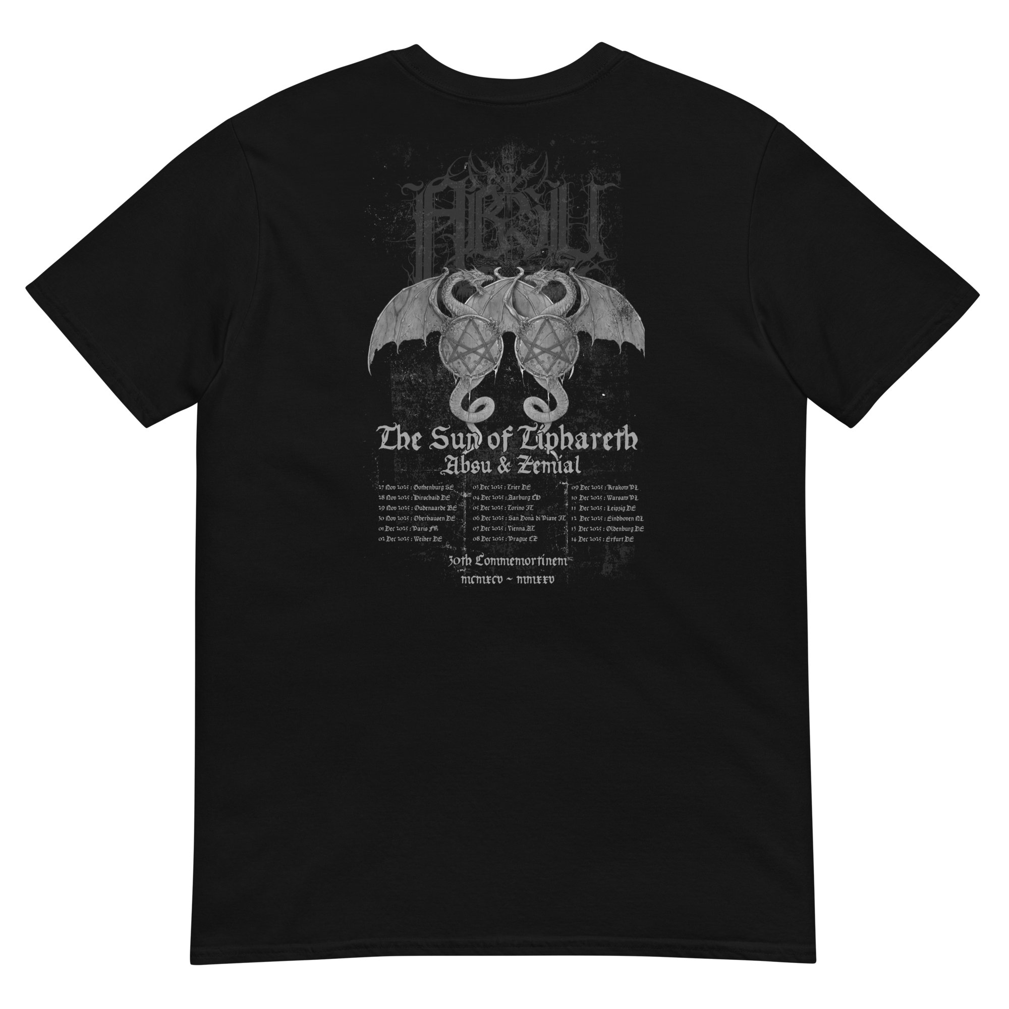 ABSU – THE SUN OF TIPHARETH: 2025 EUROPEAN TOUR: DESIGN I (TWO–SIDED: SILVER & GREY PRINT)